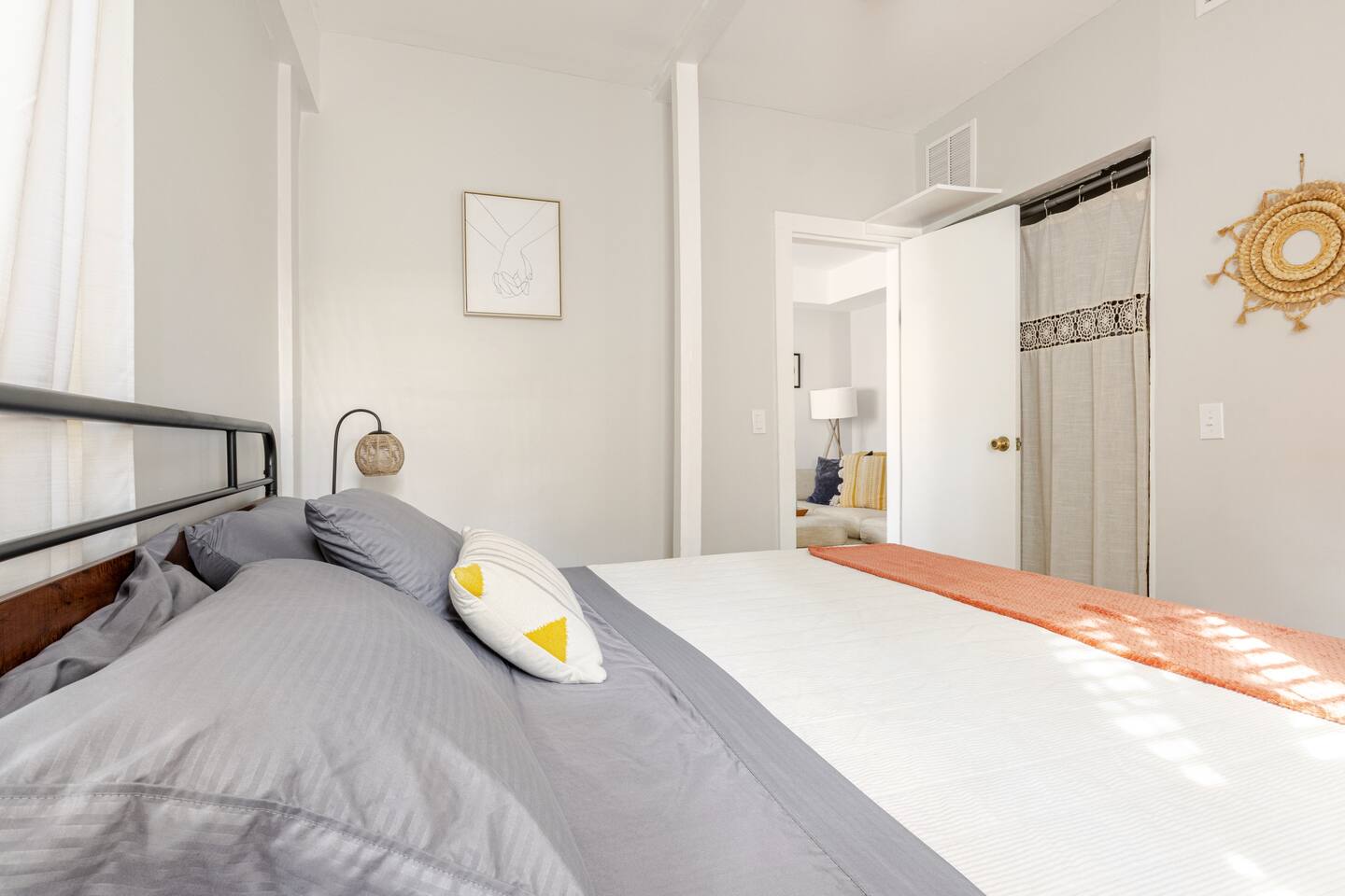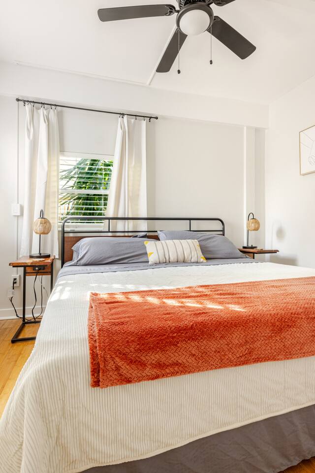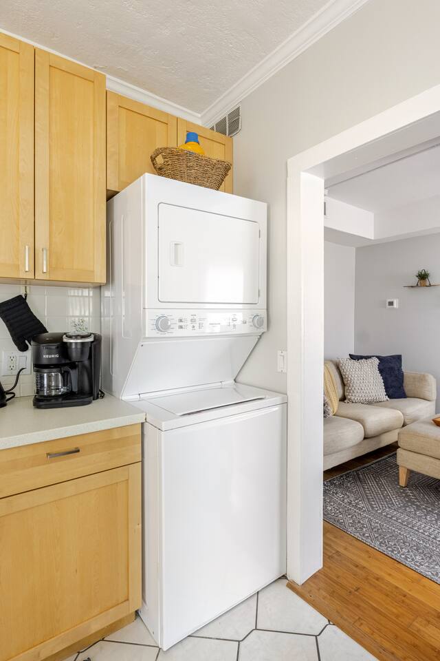 We welcome your pets/fur babies! However, please note there is a one time fee of $100 to ensure the unit is spotless before you arrive and after your stay for the next guests. We provide a Keurig Coffee maker that has both a carafe and the common single cup option. We provide Gevalia coffee grounds for the drip side of the coffee maker and a stainless steel reusable K-cup in case you just want a single cup. If you have a preferred coffee type or flavor then we recommend you bring your favorite K-cup or just visit one of the many coffee shops just one block away. The bed is a king size for your comfort. As for the WiFi, it is 1 Gigabyte speed (fastest available) and you can connect by tapping your phone on the block of wood with a WiFi signal on the front. If that doesn’t work then there is a QR code on the back that will connect you and if all else fails then you can find the user name and password on the back of the same block. Tapping your phone on the block is newer technology that is new to a lot of people.