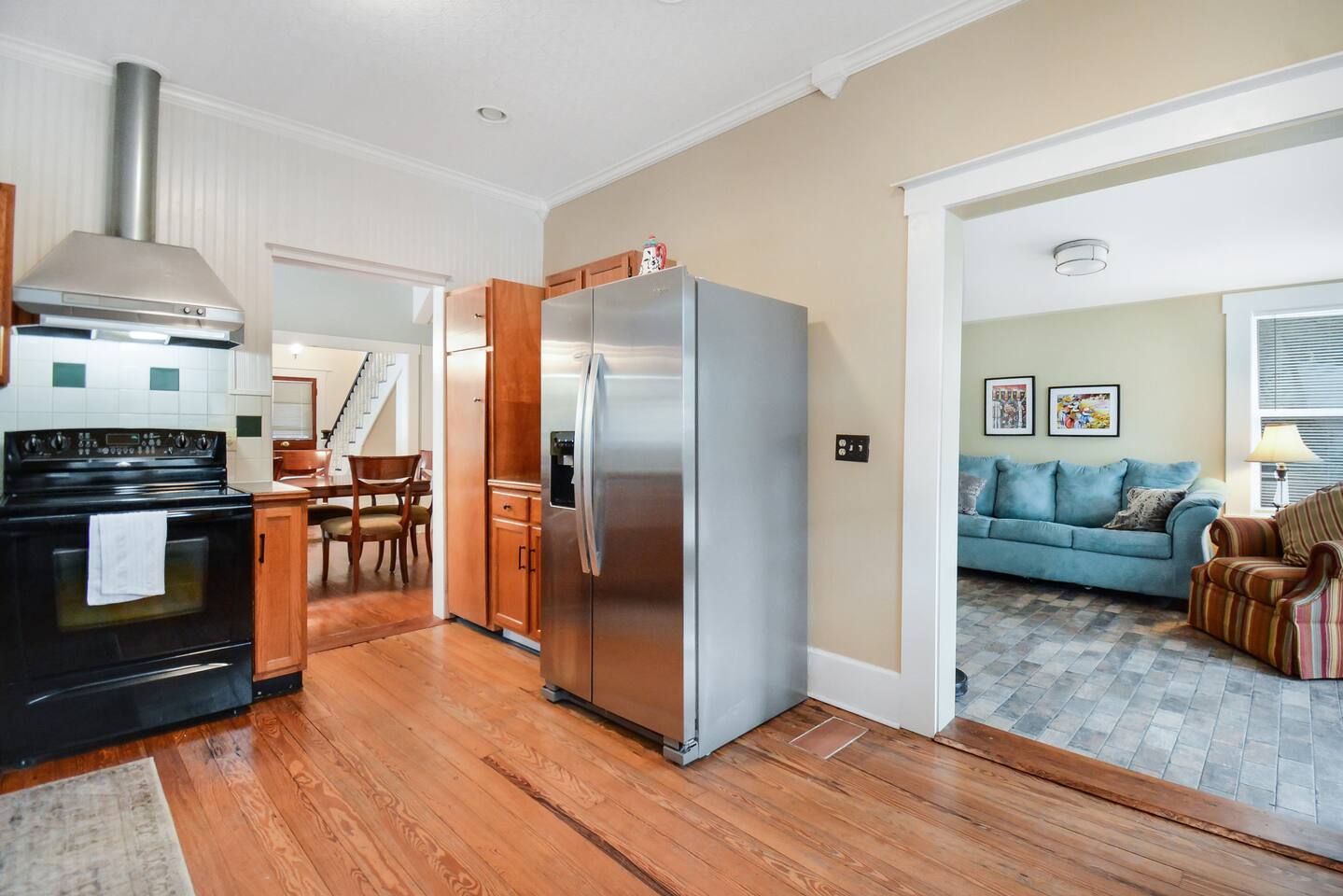 This is a beautiful old street with many historic homes and a couple of small businesses. You have a short beautiful walk from here through uptown into downtown. It is a treat to walk and see all of the shops!